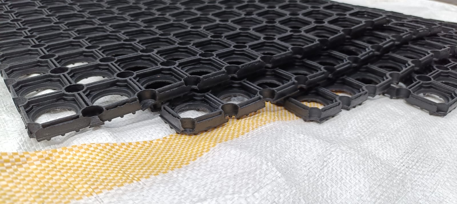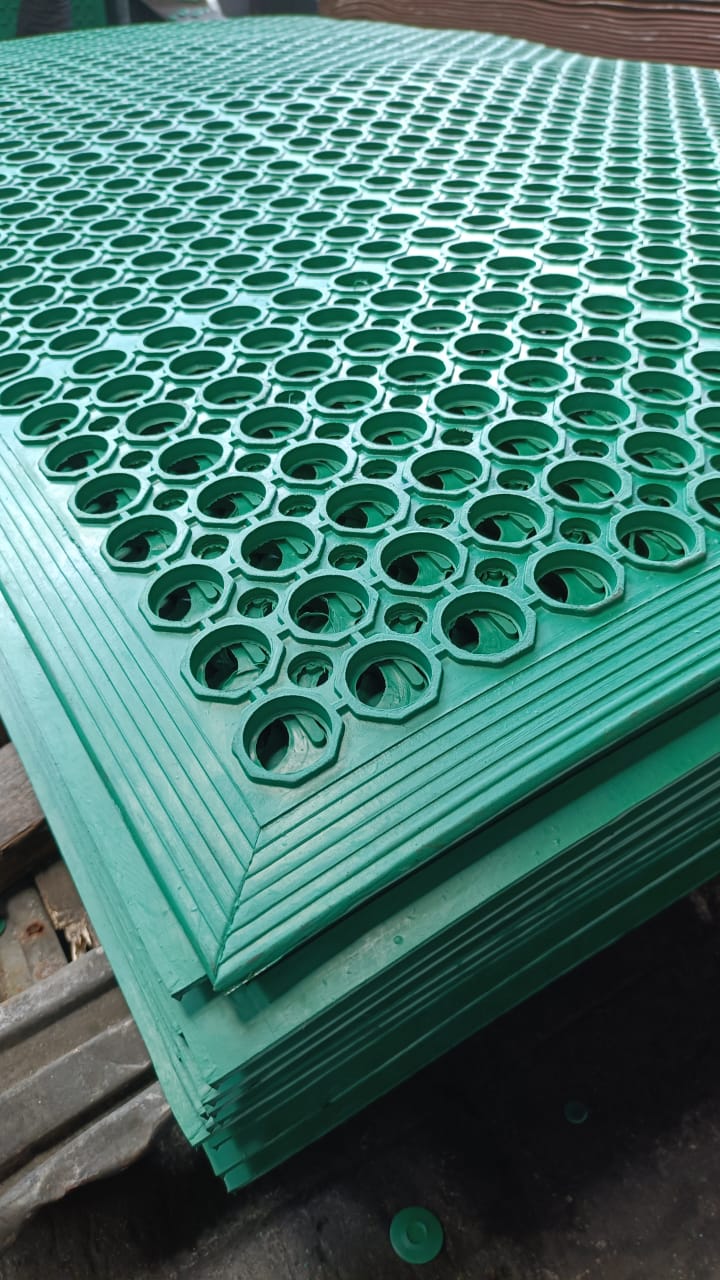 PT. Sinar Jaya Rubber menyediakan berbagai ukuran dan model karpet keset karet yang dapat disesuaikan dengan kebutuhan rumah tangga, perkantoran, hingga industri.